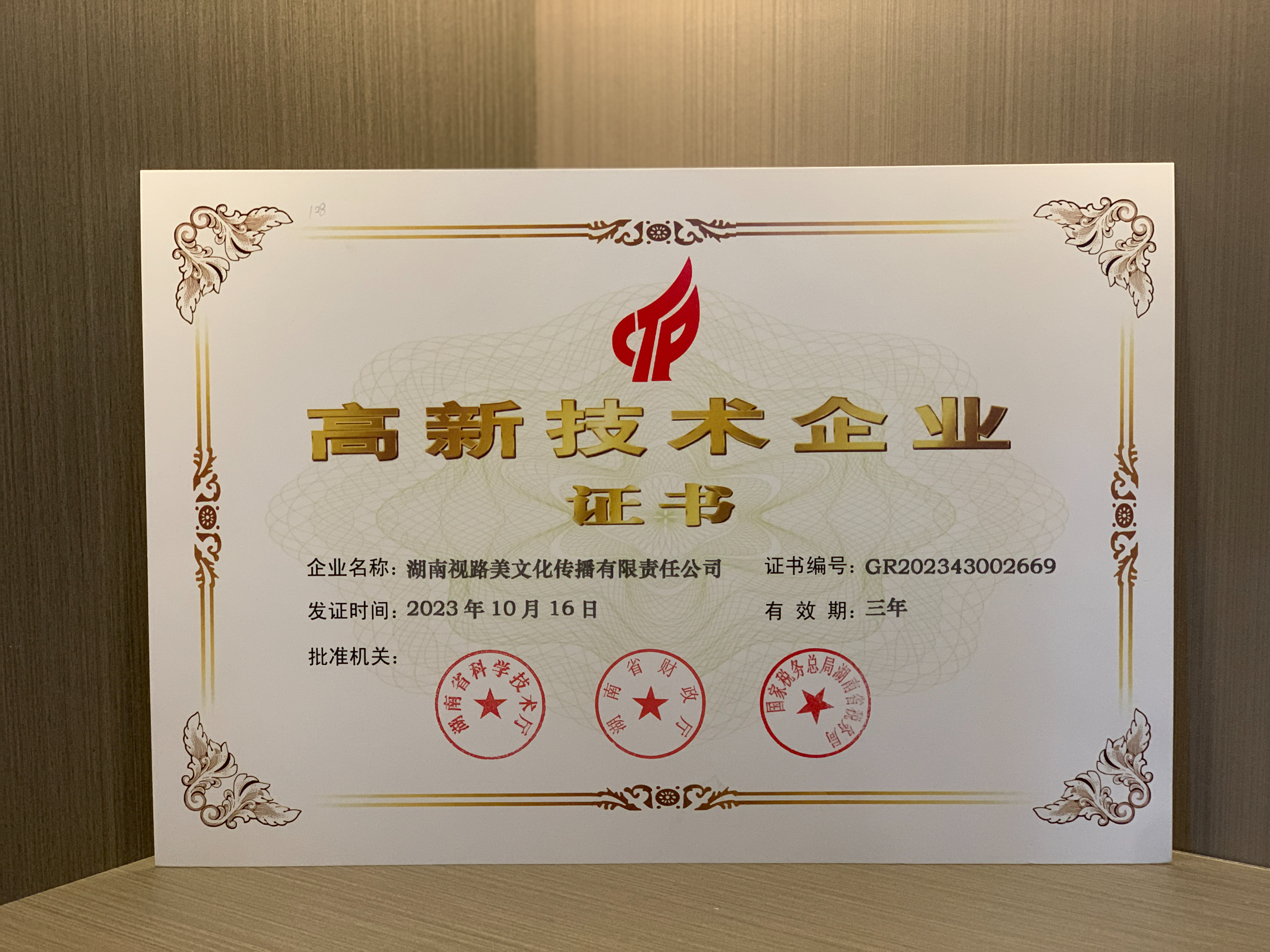 高新技术企业证书